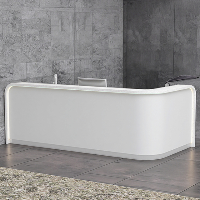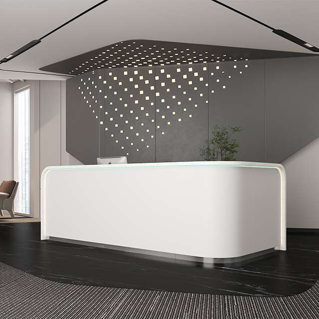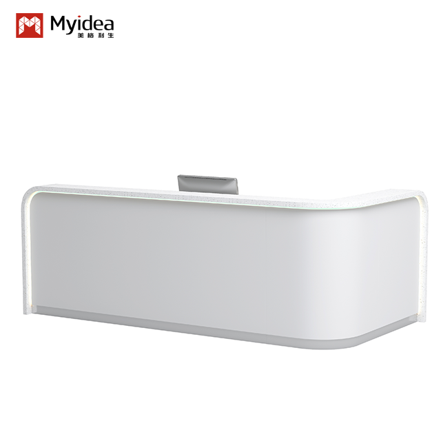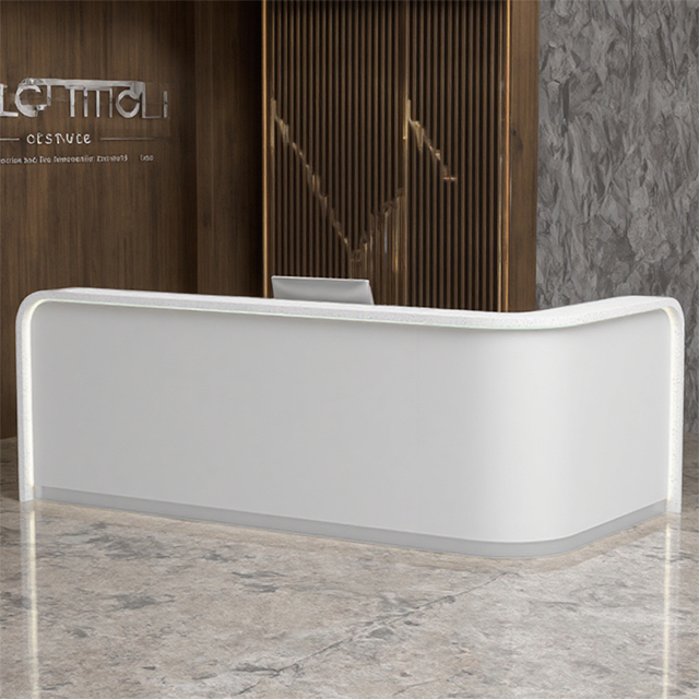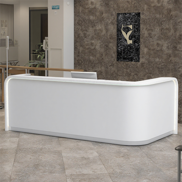 बनावट कृत्रिम पत्थर काउंटरटॉप फ्रंट डेस्क कंपनी होटल रिसेप्शन डेस्क सर्विस डेस्क सरल आधुनिक और स्टाइलिश घुमावदार काउंटर