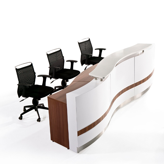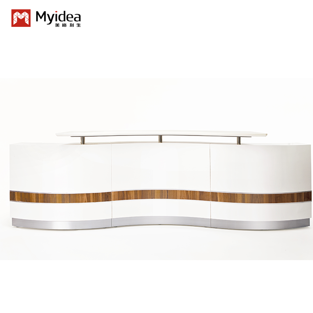 घुमावदार बेक्ड पेंट रिसेप्शन डेस्क, कंपनी बार काउंटर, सौंदर्य अस्पताल, दंत चिकित्सालय, गोल कैशियर काउंटर, सरल और आधुनिक रिसेप्शन डेस्क