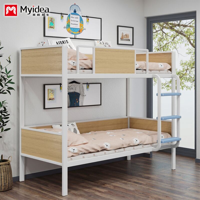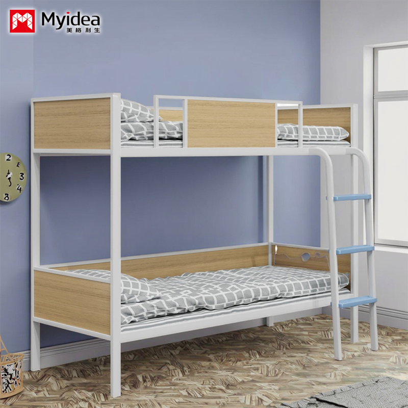अनुकूलन Myvidea अपार्टमेंट मोटी पाइप के साथ बंक बिस्तर, स्कूल बच्चों के बिस्तर, डबल परत लोहे के फ्रेम बिस्तर
