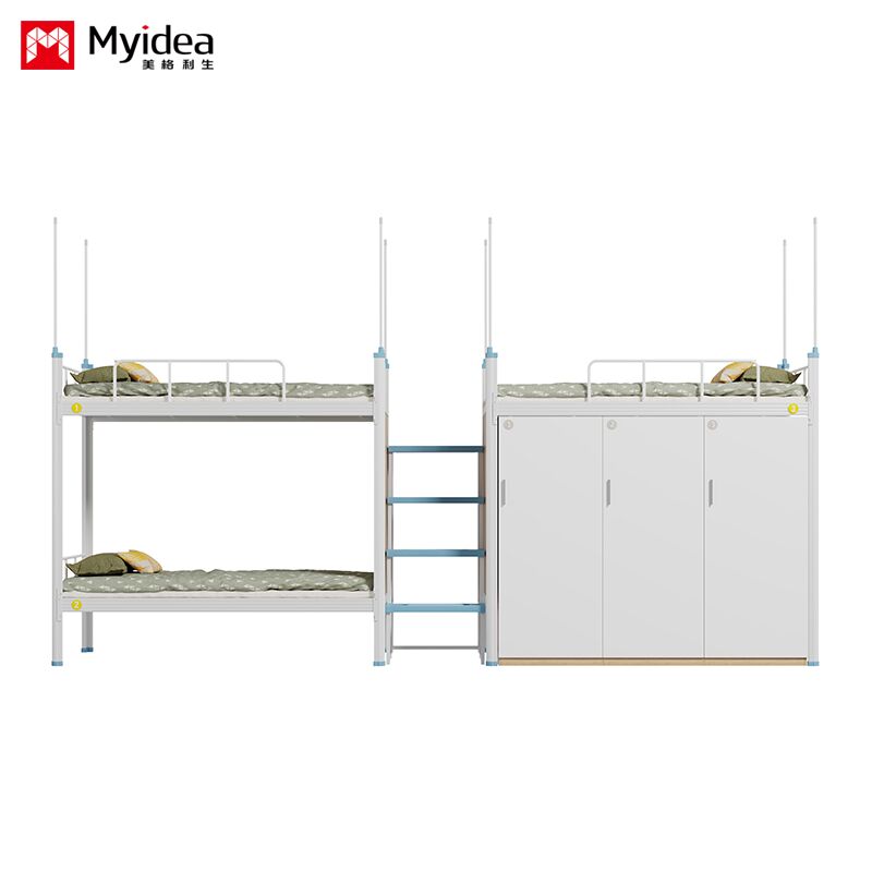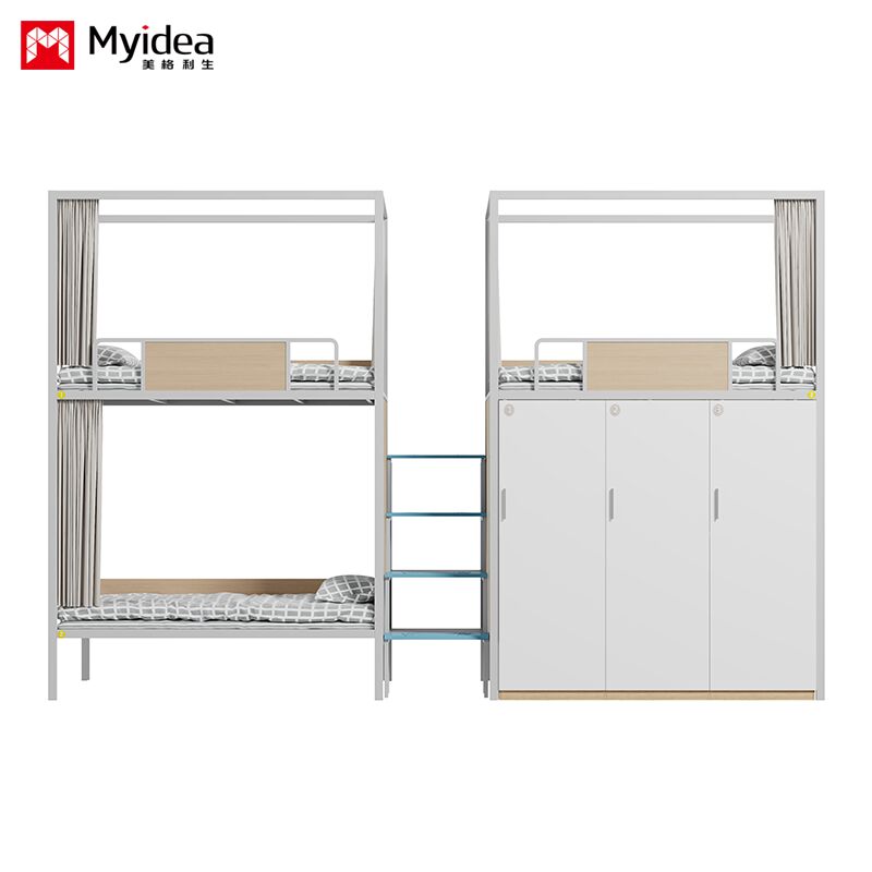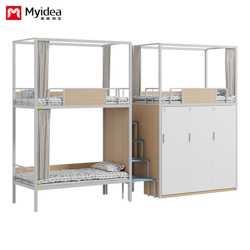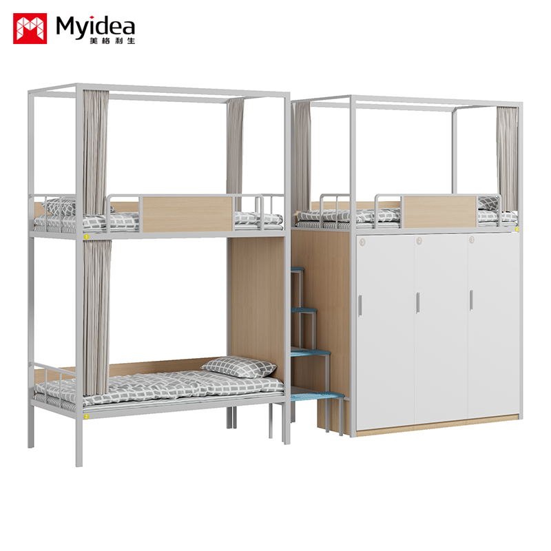 छात्रावास तीन व्यक्ति बिस्तर अलमारी के साथ, सुरक्षित रात प्रकाश कदम सीढ़ी, उच्च गार्डरेल, बिस्तर पर्दा, स्कूल छात्रावास बिस्तर