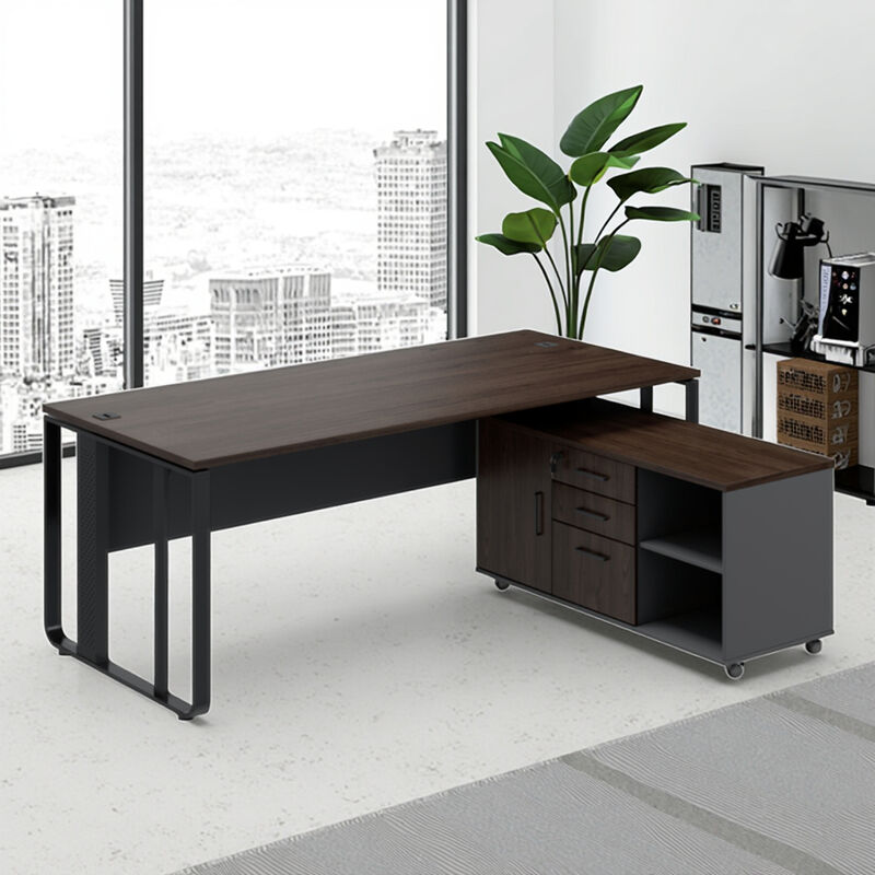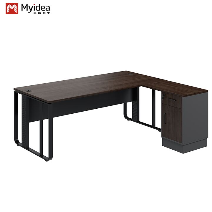 कार्यालय भवन के लिए स्टील-पैर वाले डिजाइन और भंडारण उप-कैबिनेट के साथ एक समकालीन लक्जरी बॉस की कार्यकारी डेस्क