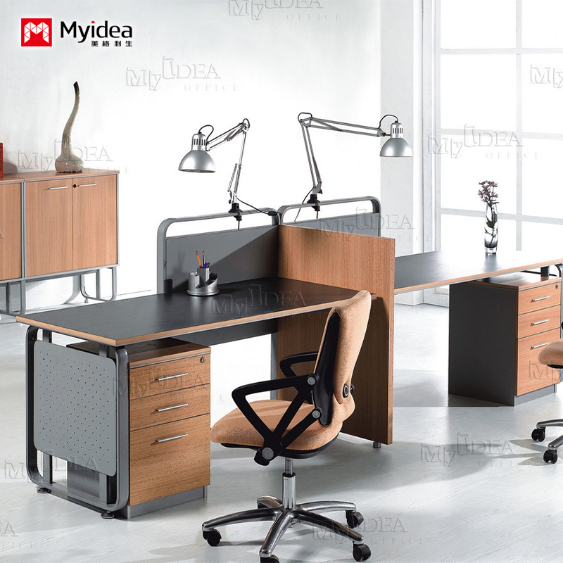 Modern Minimalist Two Person Combination Office Desk with Screen, Card Holder Partition, Multi Person Combination Staff Desk