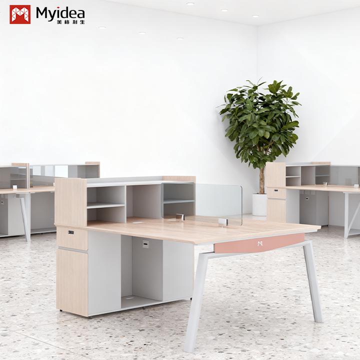 ग्लास स्क्रीन और वाणिज्यिक उपयोग के लिए पर्यावरण-अनुकूल कार्यालय फर्नीचर के साथ आधुनिक समकालीन स्टाफ डेस्क